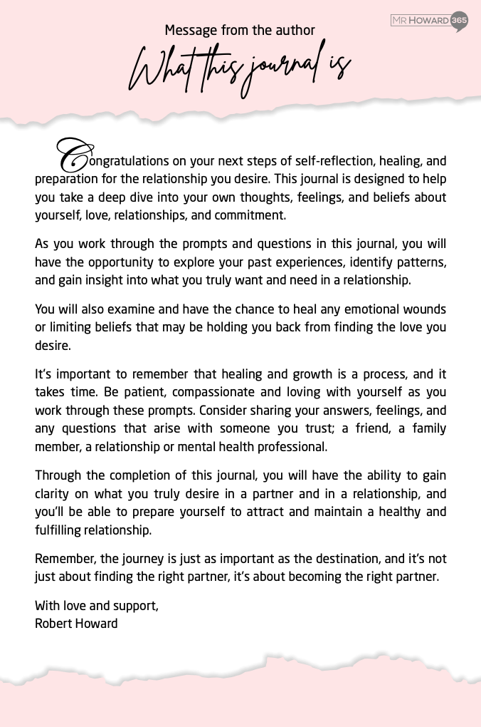 Curated by Robert Howard *aka @MrHoward365, this journal has 90 questions to facilitate a transformative opportunity for self-discovery, clarity, and growth.